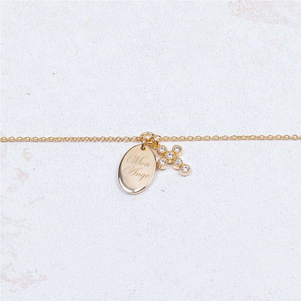 Agnes, our bracelet with a medal to personalize and a cross set with zirconium oxide.