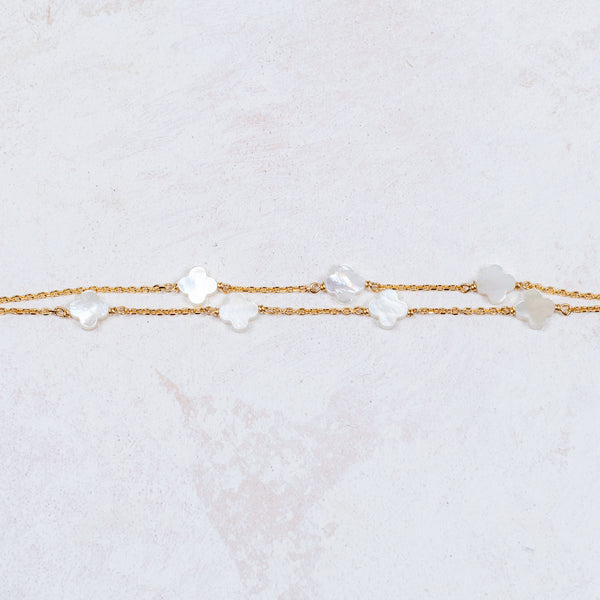 Alexandre, our double-strand bracelet set with mother-of-pearl flowers at regular intervals.