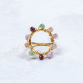 Alma, notre bague martelée et enroulée de pierres de soleil, de grenat, de quartz rose, d'aventurine et de tourmaline.