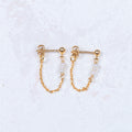 Prudence, nos boucles en chaîne contournant le lobe, parées de perles d'eau douce.