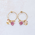 Montées avec des pierres de grenat, de rhodonite et de perles d'eau douce.