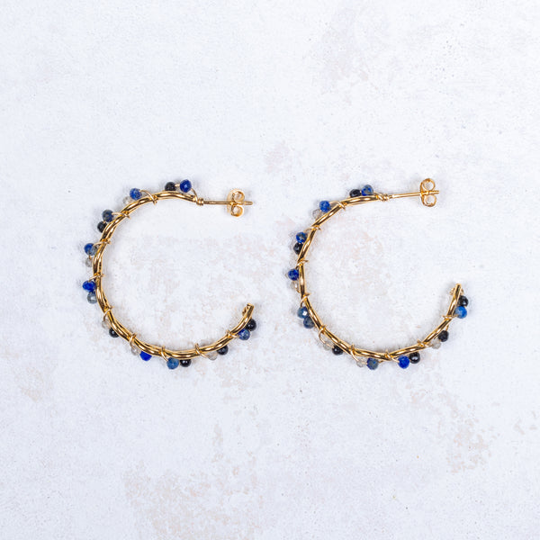 Marion, nos délicates créoles tressées d'or et parées de pierres naturelles.
