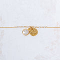 Bertille, notre bracelet avec perles d'eau douce composé d'une jolie médaille martelée à personnaliser et d'une pampille ronde en nacre.