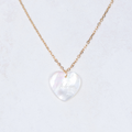 Clémence, notre collier composé d'un pendentif en nacre en forme de cœur déposé sur une chaîne délicate.