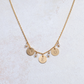 Richard, notre collier fin relevé de quatre perles d'eau douce en pampilles et de trois petites médailles à personnaliser.
