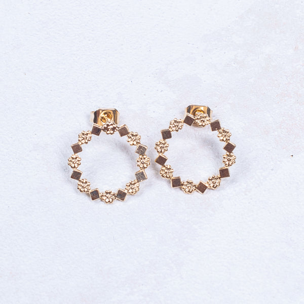 Lili, nos jolies boucles d'oreilles en forme de couronnes, alternant une fleur et un losange.