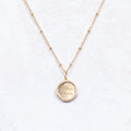 Gisèle, notre collier avec sa médaille aux contours perlés à personnaliser et sa chaîne perlée.